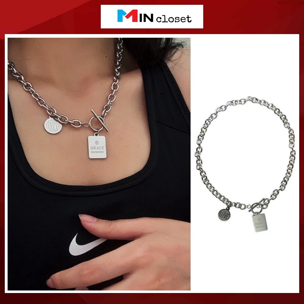 💖 𝑭𝑹𝑬𝑬𝑺𝑯𝑰𝑷 💖 Vòng cổ bằng thép không gỉ mặt thẻ tròn/vuông phối chữ phong cách Harajuku hiphop P42