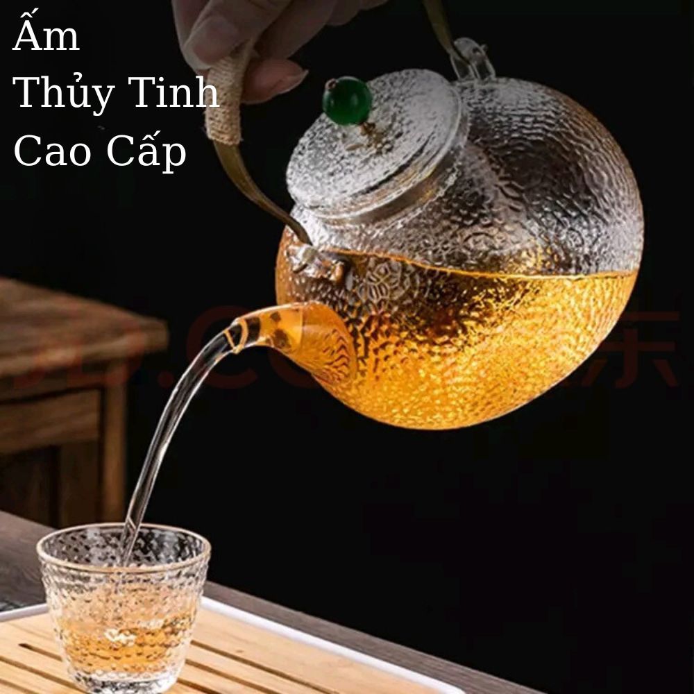 Ấm pha trà thủy tinh cao cấp có quai chịu đc nhiệt độ cao