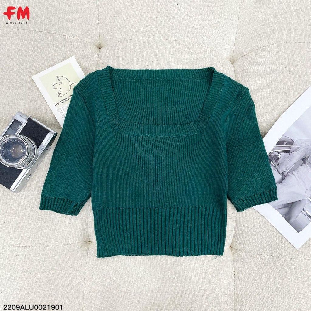 Áo cadigan nữ FM Style tay ngắn cổ bầu chất len dệt kim mềm mịn co giản thời trang basic phong cách ulzzang 209190016