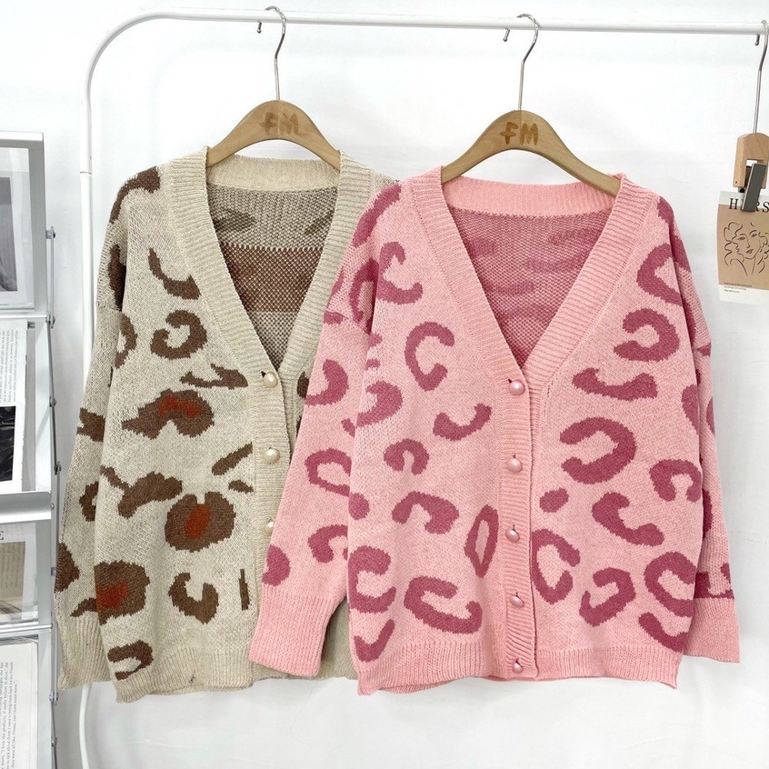 Áo cardigan len nữ FM Style hoạ tiết da báo đính nút thời trang phong cách Ulzzang Hàn Quốc 209160057