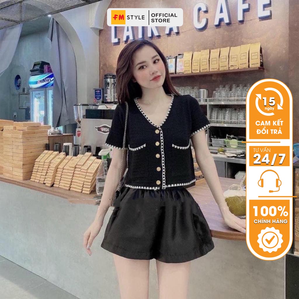4 đánh giá choÁo cardigan nữ FM Style len croptop cổ v tay ngắn phối nút chạy viền thời trang Hàn Quốc 206230044
