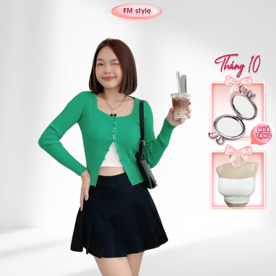 5 đánh giá choÁo cardigan nữ FM Style tay dài cổ vuông khoét eo đính nút chất len dệt kim thời trang ulzzang 209050087