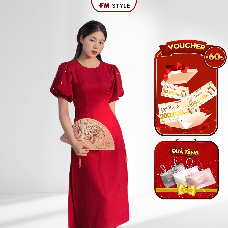 Áo dài TẾT cách tân FM Style tay phồng đính ngọc thời trang truyền thống hàng xưởng thiết kế may sẵn cao cấp 22110108