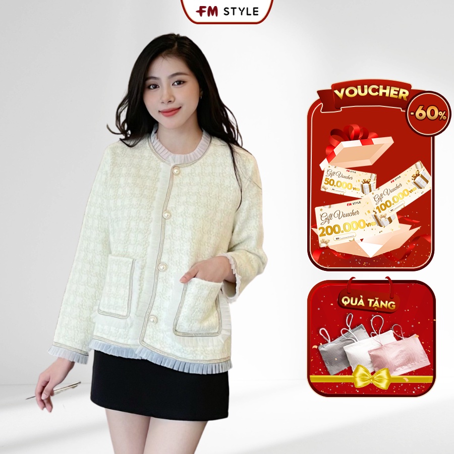 Áo khoác len nữ FM Style chất liệu kim tuyến phối viền voan đính nút thời trang sang chảnh phong cách ulzzang 209080038