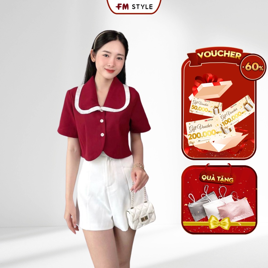 Áo kiểu hàn quốc FM Style croptop tay ngắn phối viền cổ xếp li thời trang 208120073