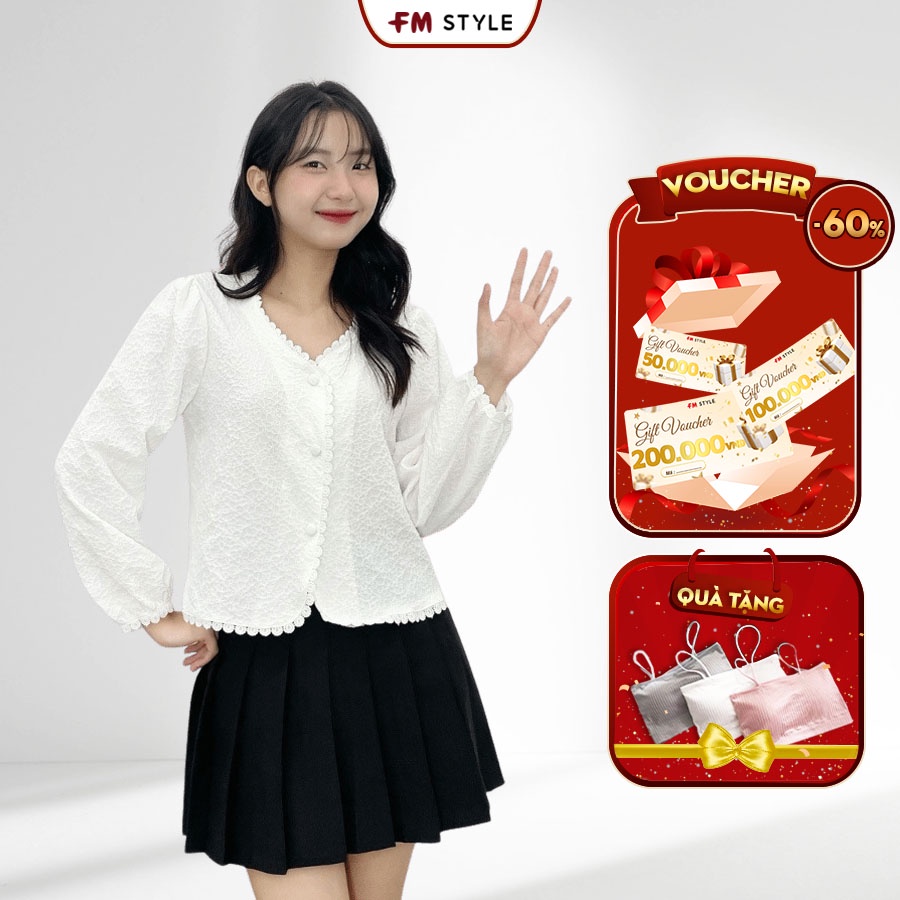 Áo kiểu nữ cardigan FM Style tay dài phối viền ren tay bo đính nút bọc thời trang Ulzzang 208310039