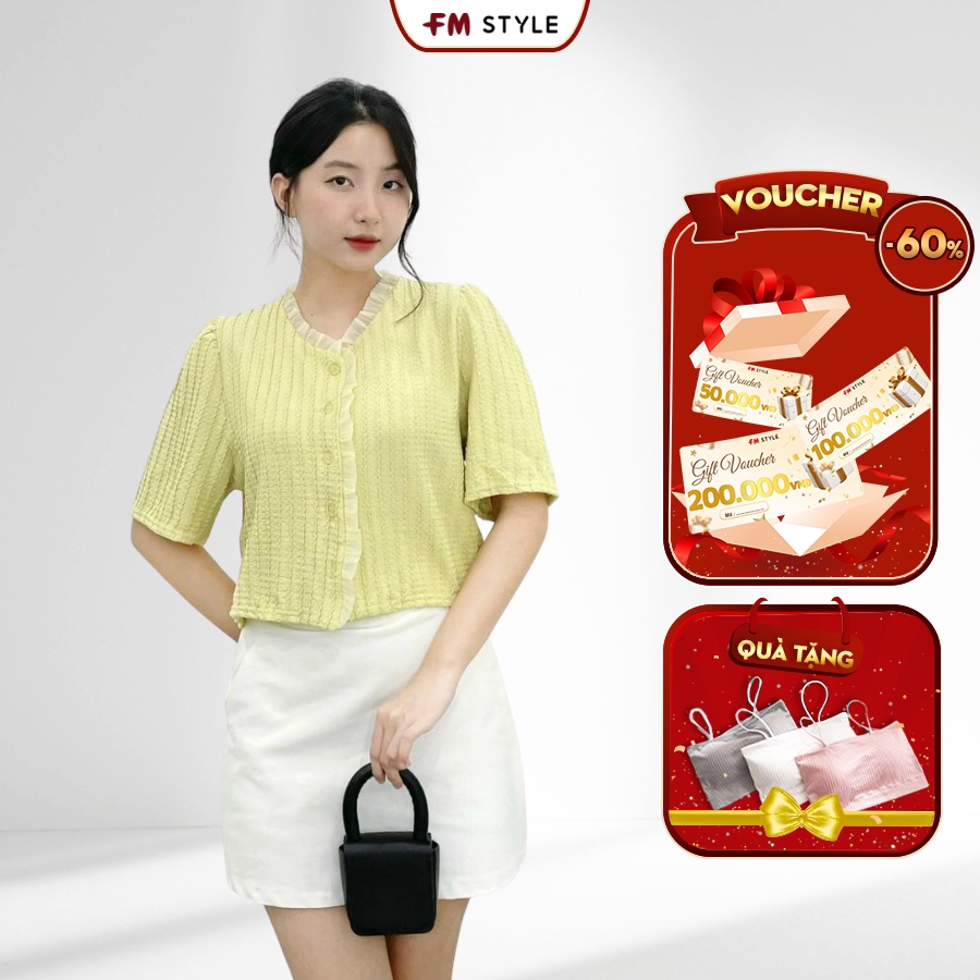 Áo kiểu nữ đẹp FM Style cổ tròn viền voan chất vải xốp thời trang bánh bèo dễ thương phong cách Hàn Quốc 207290052