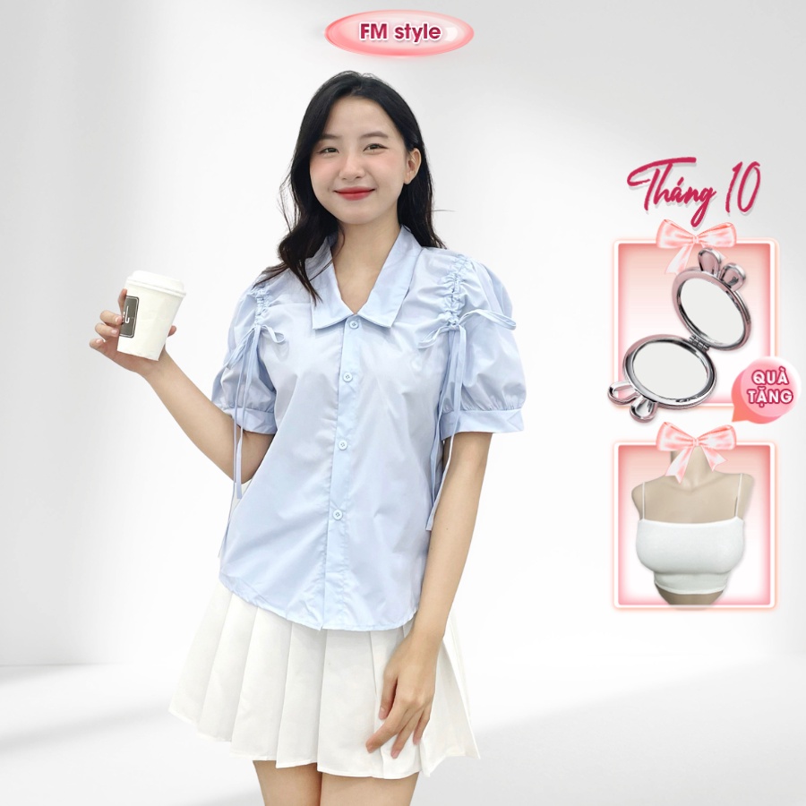 Áo kiểu nữ FM Style cổ be tay ngắn phồng phối dây rút 2 bên thời trang Hàn Quốc 208110068