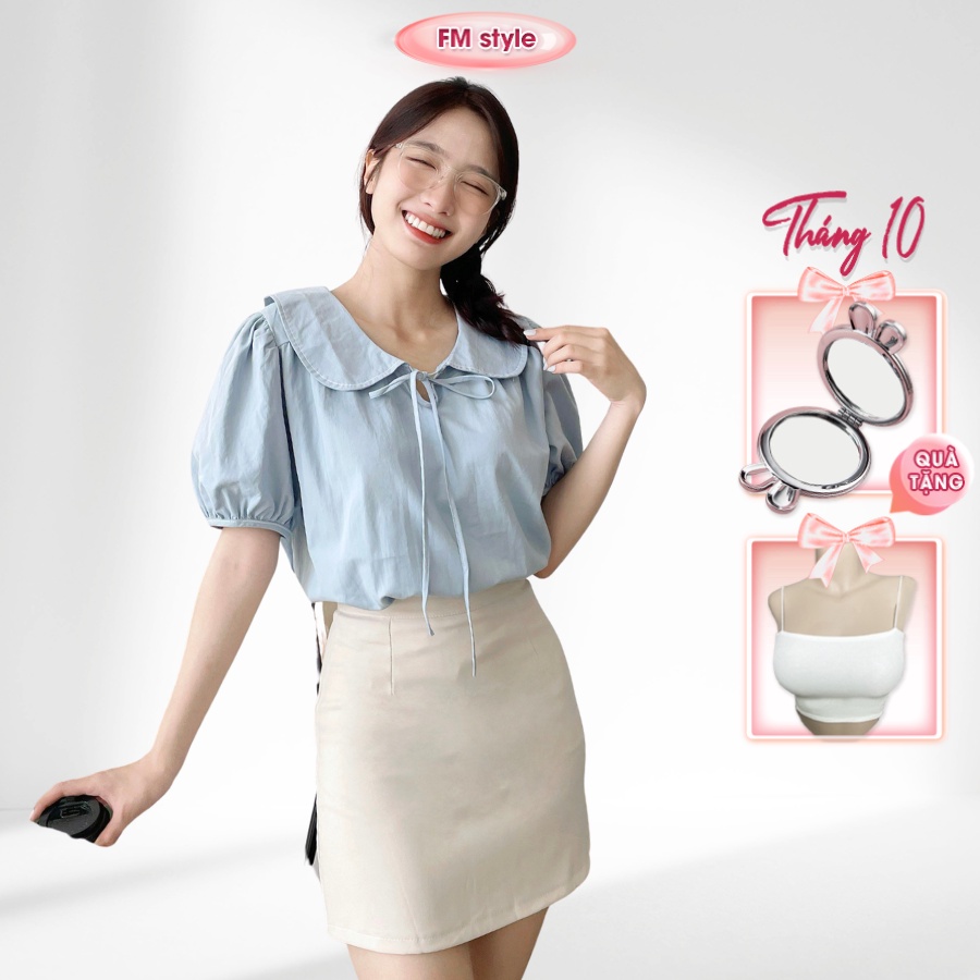 3 đánh giá choÁo kiểu nữ FM Style cổ sen dây nơ chỉ nổi tay bo thời trang bánh bèo phong cách Hàn Quốc 208310052