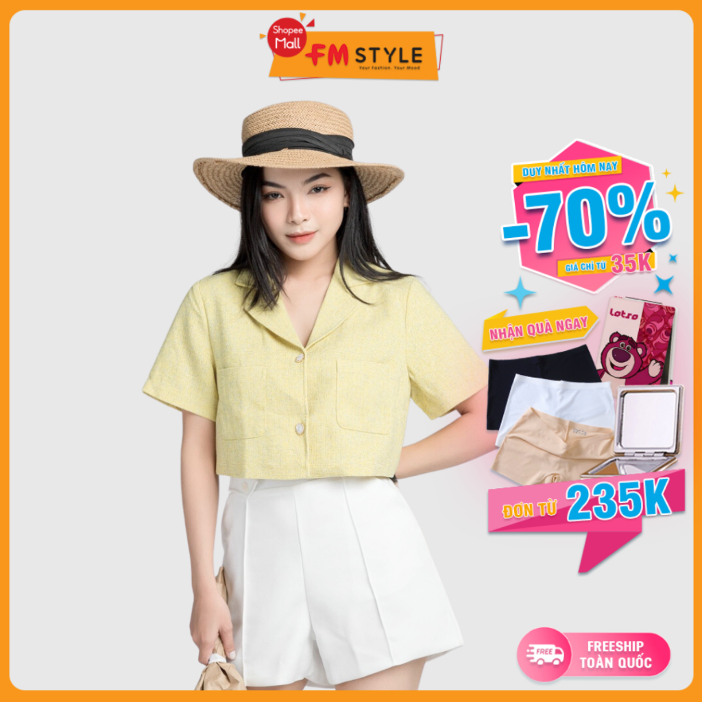 3 đánh giá choÁo kiểu nữ FM STYLE kiểu dạ cổ vest dáng croptop phối nút thời trang thiết kế phong cách sang chảnh 23010743