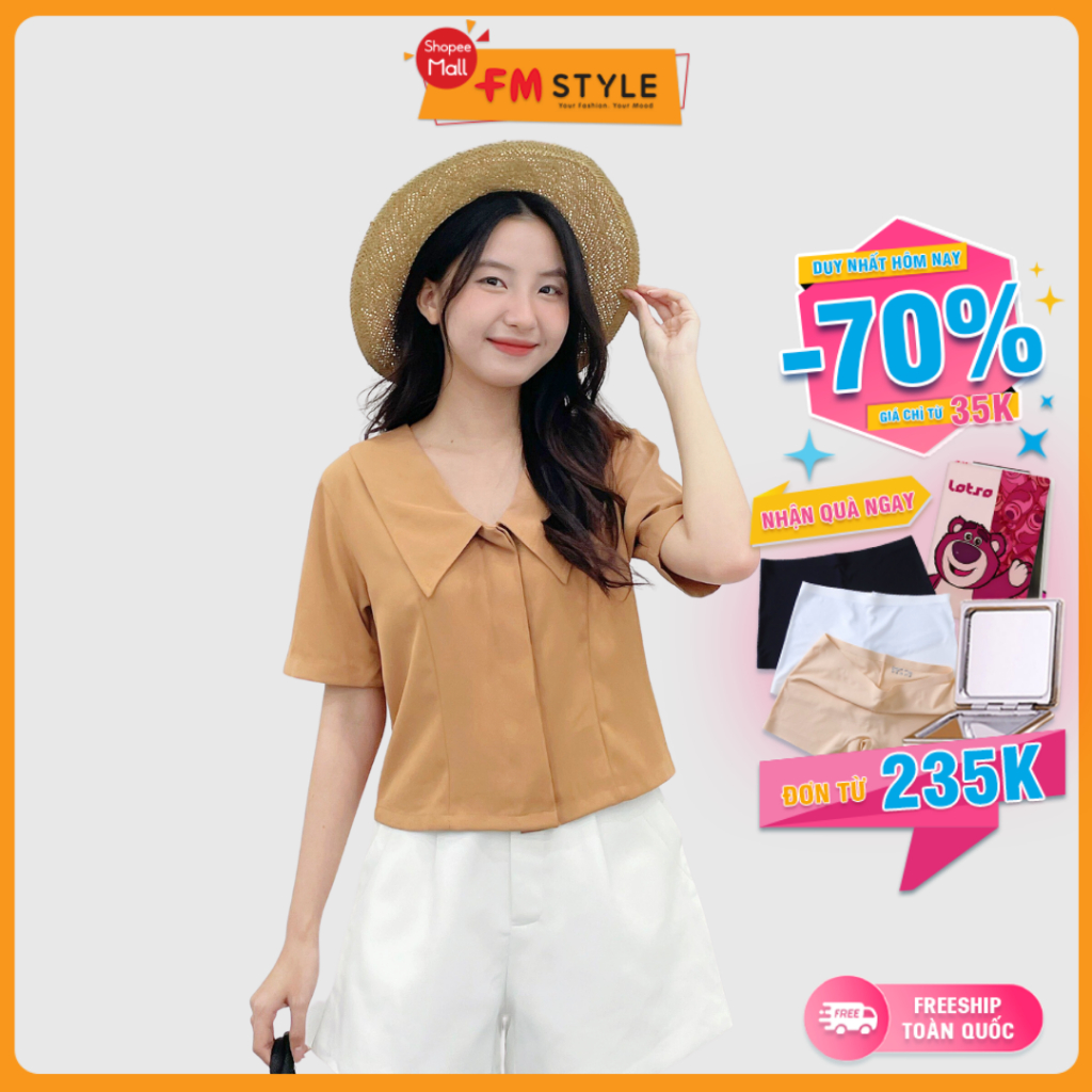 – Tên sản phẩm: Áo kiểu nữ FM Style tay ngắn cổ nhọn thiết kế tà áo chéo chất lụa mềm mịn thời trang bánh bèo Hàn Quốc