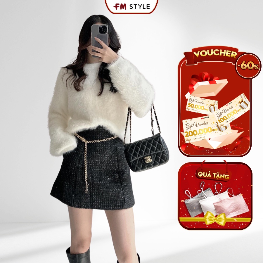 Áo len lông FM Styel chất lông mềm mịn tay dài cổ tròn dáng ngắn nhiều màu sắc thời trang mùa đông ulzzang 211070076