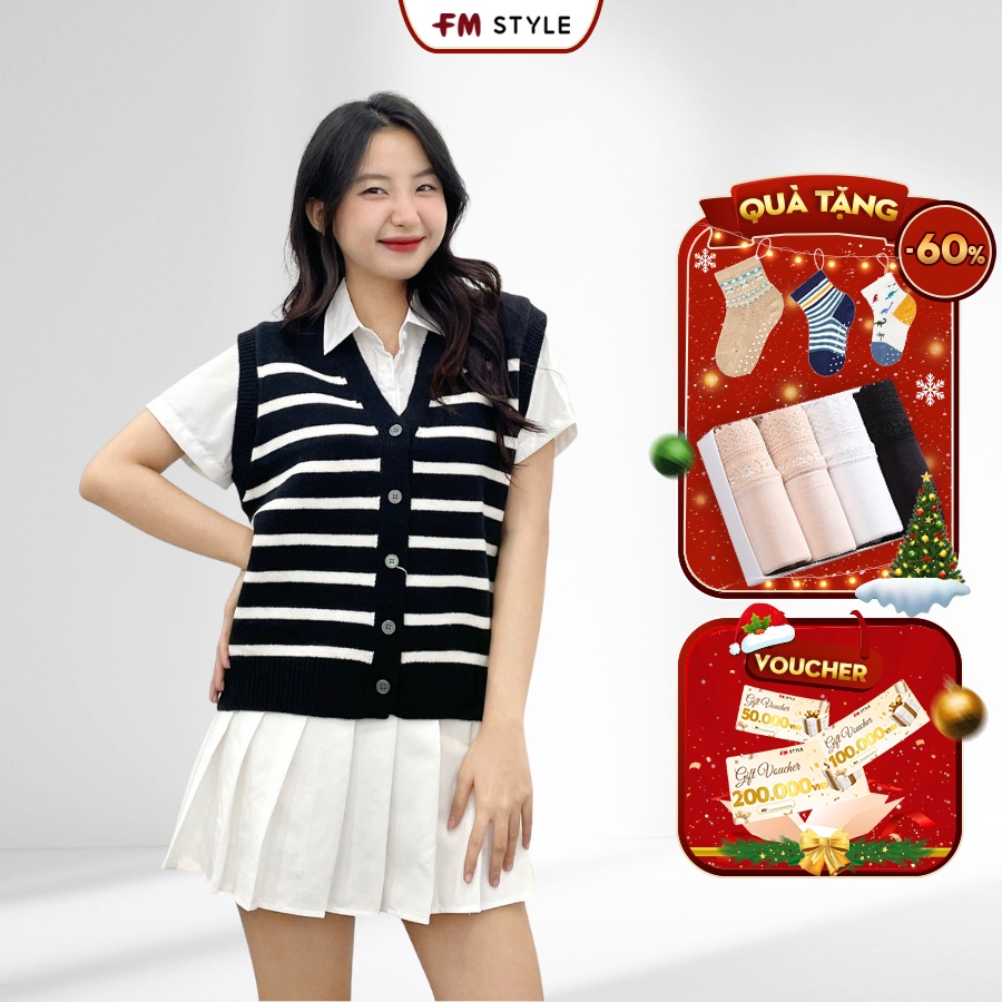 Áo len nữ FM Style ghile cổ tim kẻ ngang cài nút kiểu cardigan chất len mềm mịn thời trang Hàn Quốc 208160152