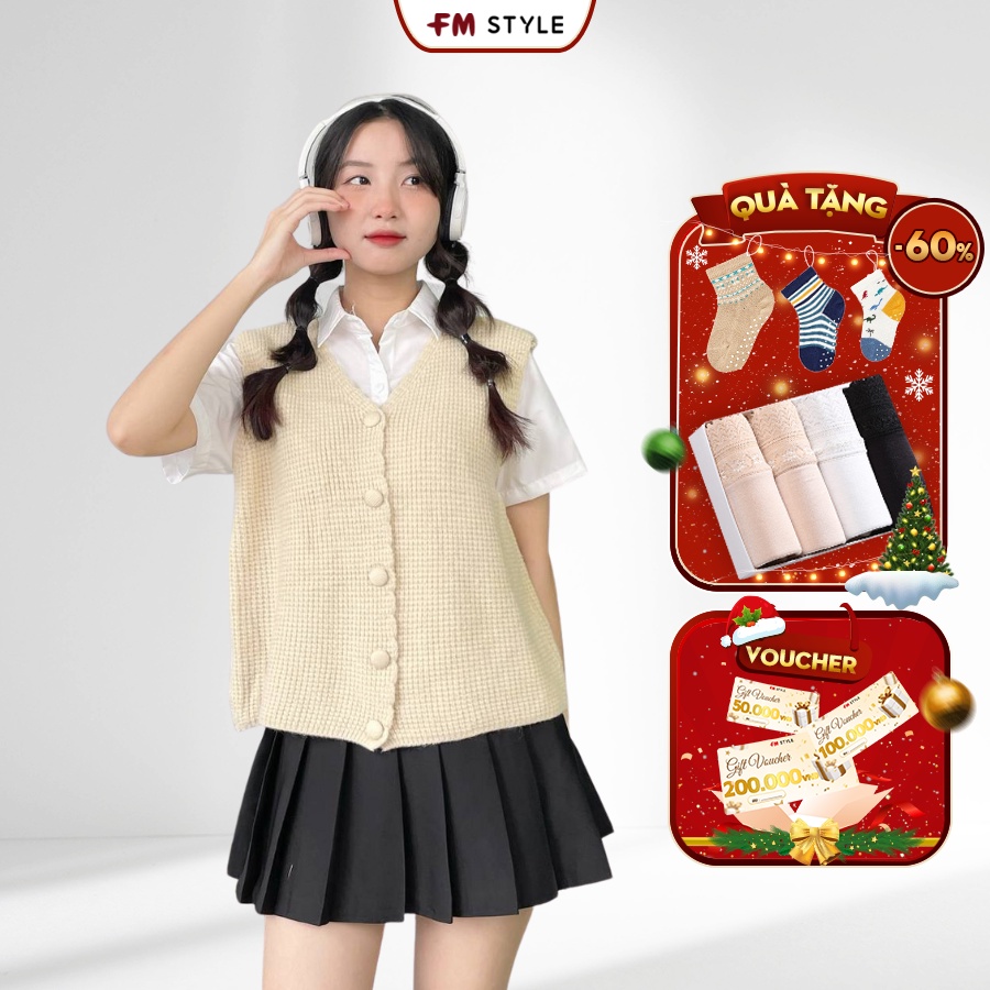 Áo len nữ hàn quốc FM Style ghile cổ tim phối nút bọc chất len dệt kim cao cấp thời trang ulzzang 209170033