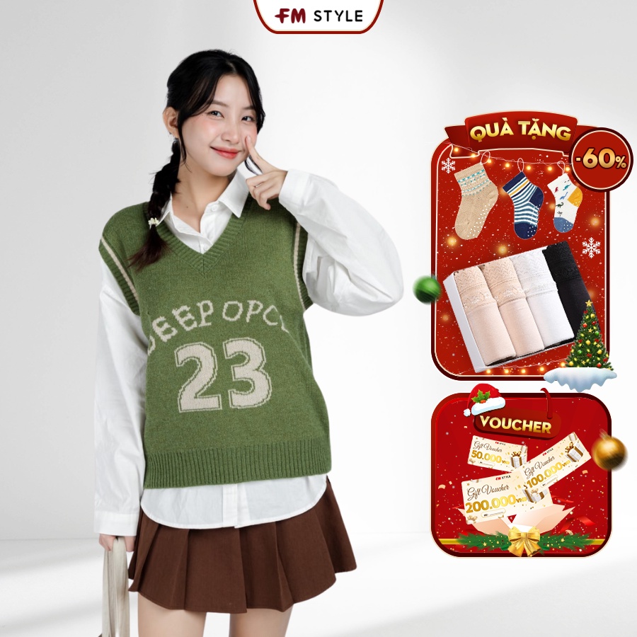 Áo len nữ kiểu FM Style cổ tim phối viền in chữ chất len dệt kim thời trang ulzzang 209160062