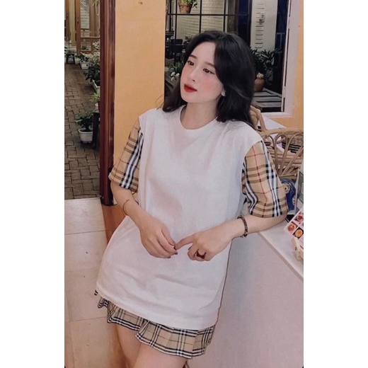 áo phông tay phối kẻ siêu hot