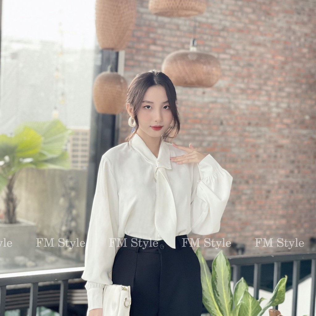 5 đánh giá choÁo sơ mi kiểu nữ Fm Style tay dài phần cổ áo cách điệu thời trang công sở Hàn Quốc 210930031