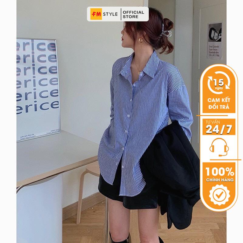 6 đánh giá choÁo sơ mi nữ FM Style cổ bẻ tay dài hoạ tiết kẻ dọc fom rộng thời trang năng động, cá tính 220322455