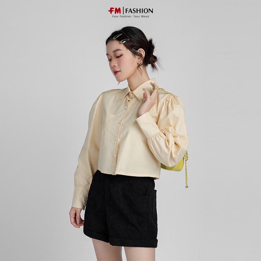 Áo sơ mi nữ FM STYLE cổ bẻ tay dài phối túi dáng croptop thời trang phong cách Hàn Quốc 22120730