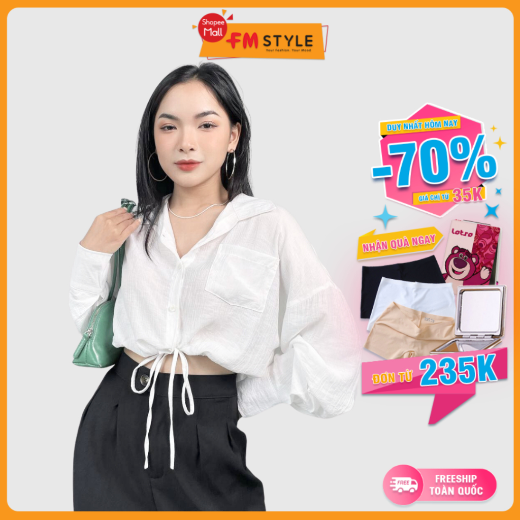 5 đánh giá choÁo sơ mi nữ FM Style cổ bẻ tay dài rút dây eo thời trang tiểu thư xinh xắn phong cách Hàn Quốc 22121121