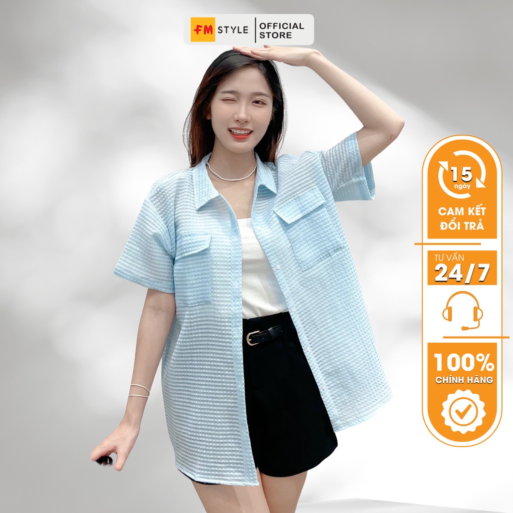 4 đánh giá choÁo sơ mi nữ FM STYLE cổ bẻ tay ngắn chất vải xốp ô thoáng mát phối 2 túi vuông nắp thời trang đi học đi làm 206240066