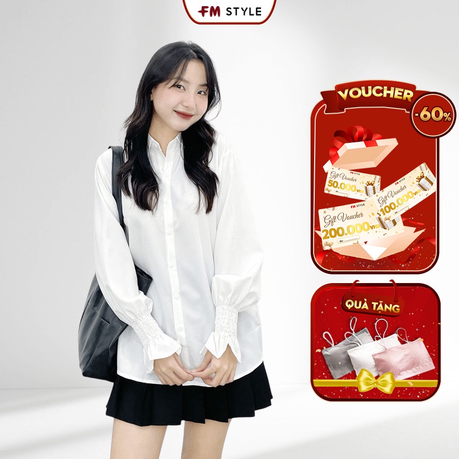 3 đánh giá choÁo sơ mi nữ FM Style cổ bẻ trơn tay dài bo thun bèo màu trắng thời trang công sở phong cách Hàn Quốc 209080069