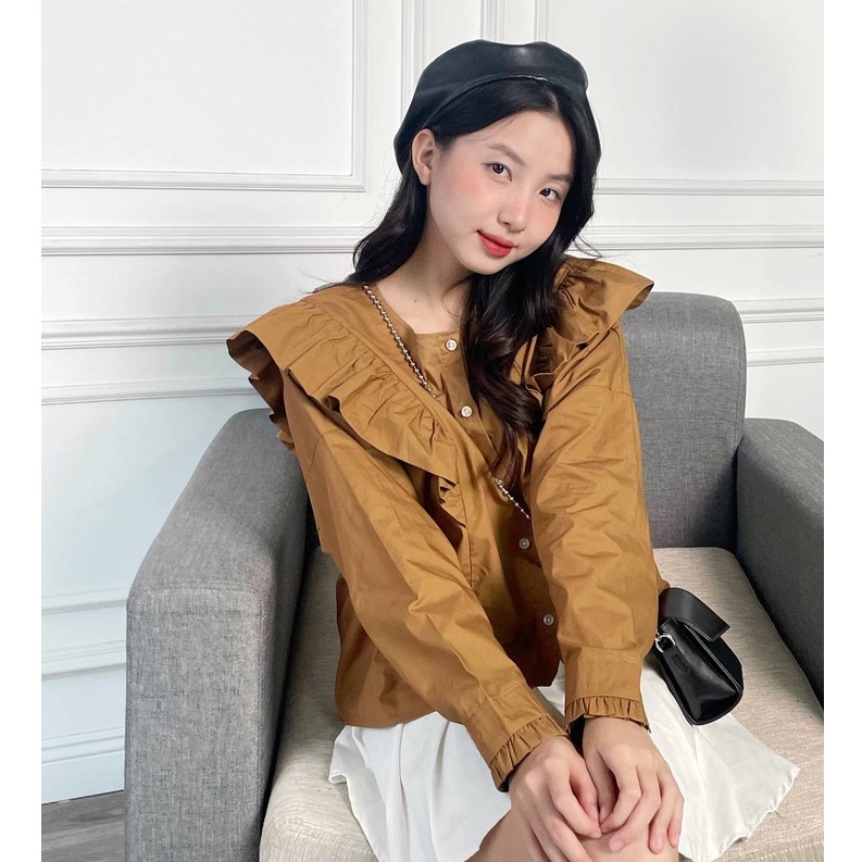 Áo sơ mi nữ FM Style thiết kế tay dài phối bèo thời trang tiểu thư xinh xắn phong cách Hàn Quốc 22120593