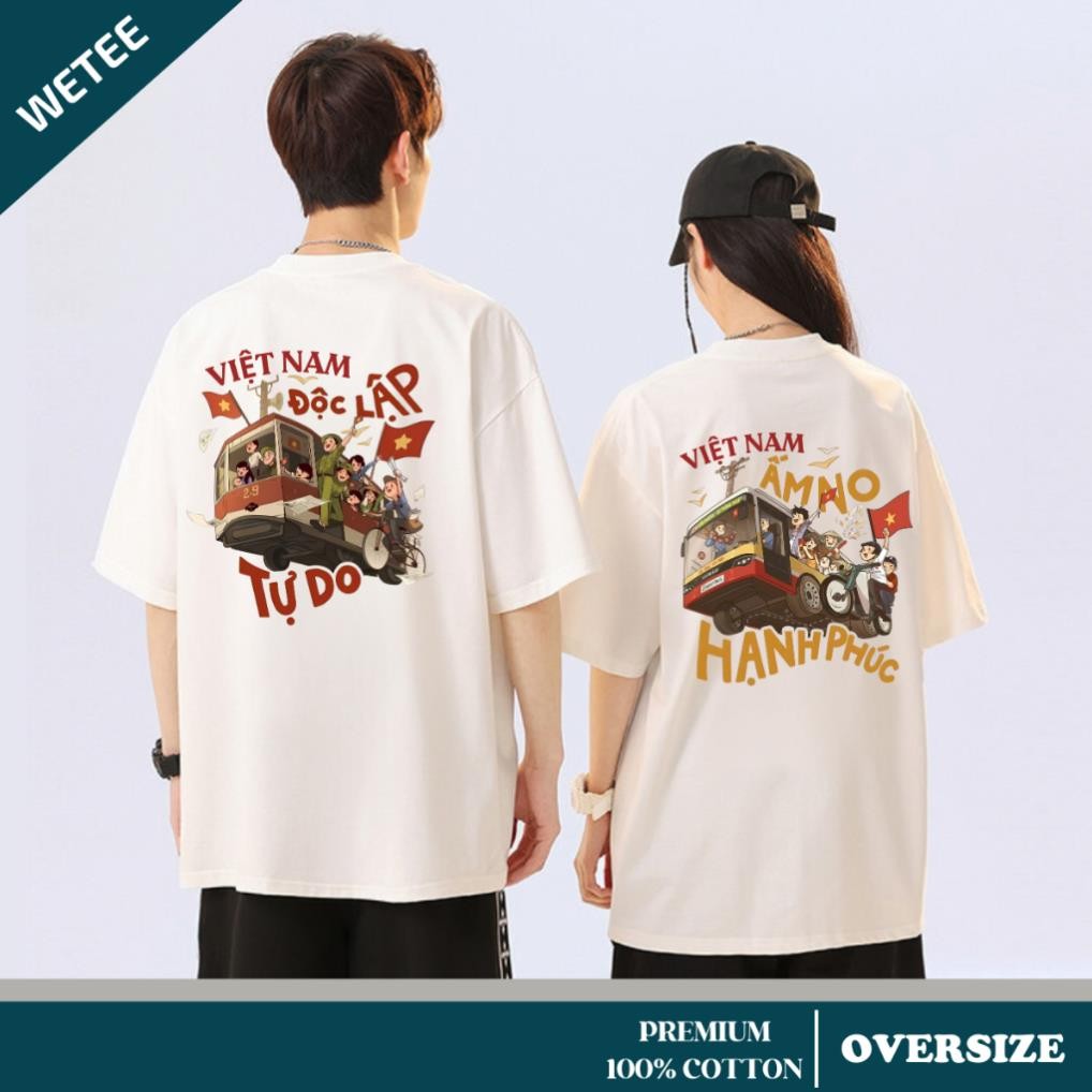 Áo thun Việt Nam Độc lập tự do, Ấm no hạnh phúc – Áo unisex nam nữ form rộngUT
