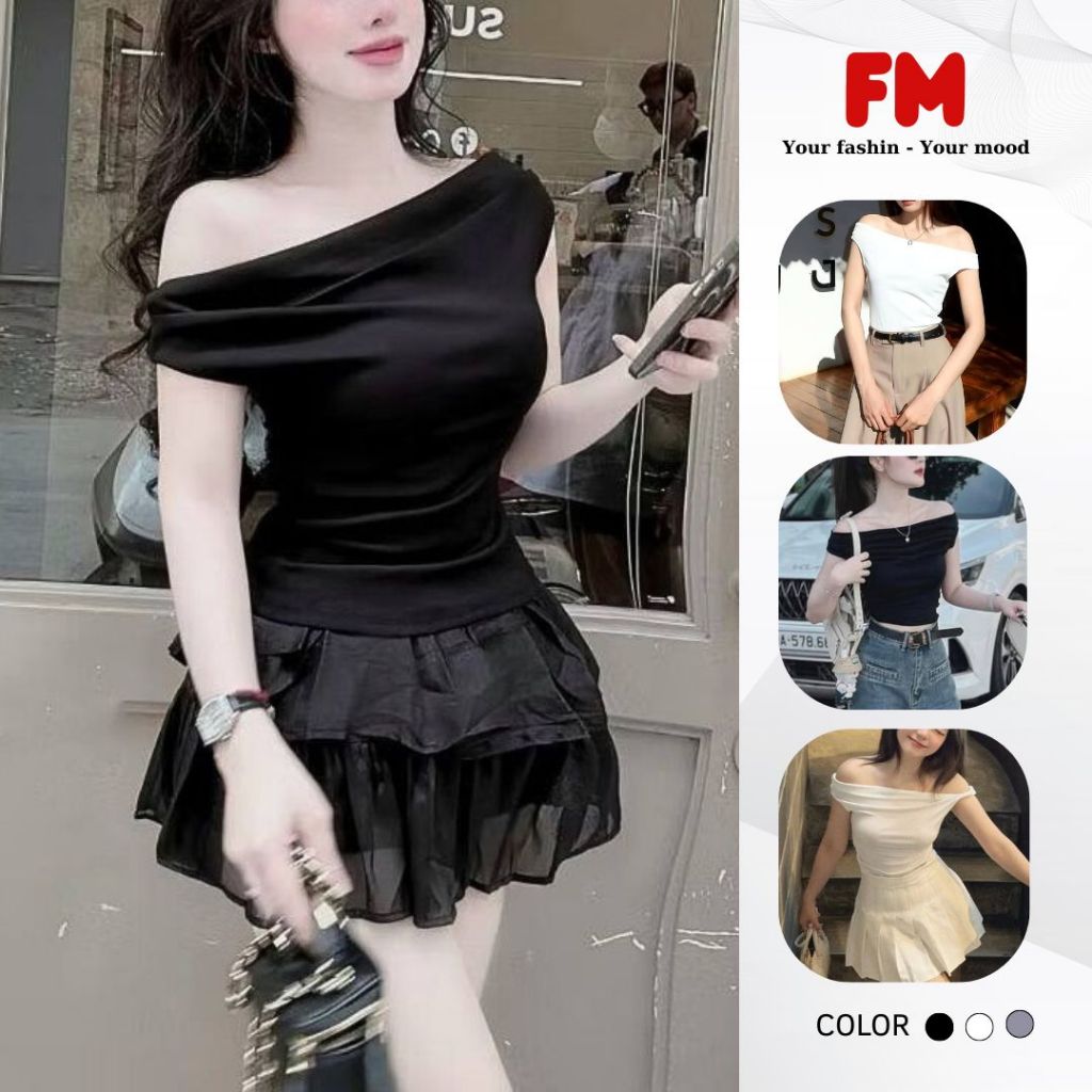 Áo Trễ Vai Kiểu Nhún Eo Nữ FMSTYLE Form Slimfit màu đen trắng mang dễ thương sang chảnh Freesize 25030766