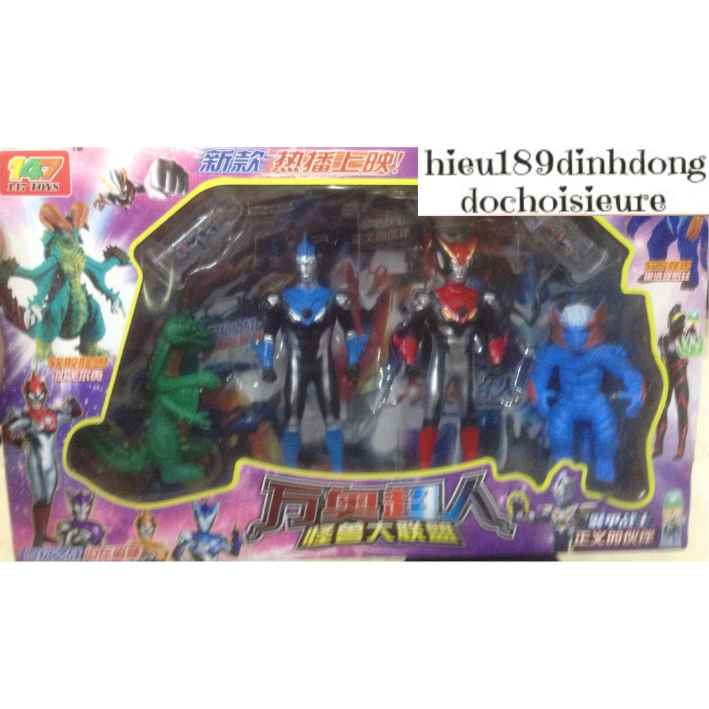 Bộ 2 mô hình siêu nhân điện quang kèm 2 quái vật bằng cao su và 2 đèn siêu nhân phát sáng (ảnh thật)