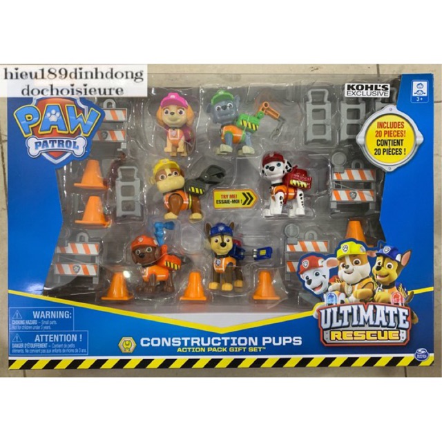 Bộ 6 Chó cứu hộ chức năng phiên bản công trường Paw patrol Full Box chính hãng Spin master xuất mỹ canada