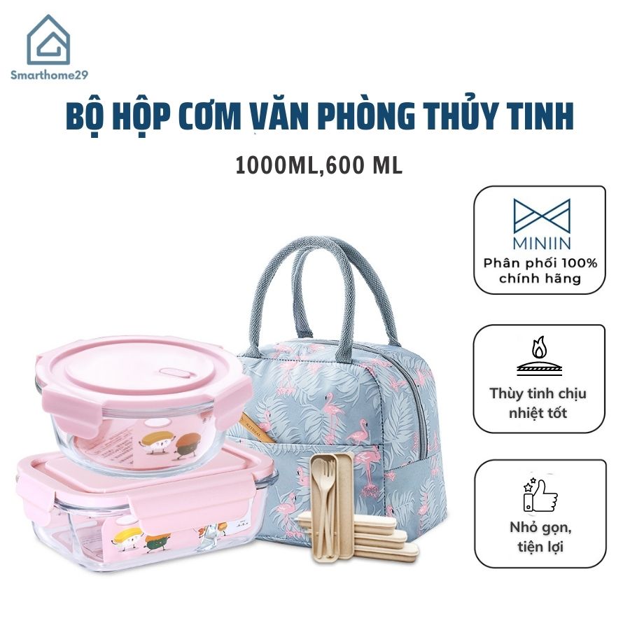 Bộ Hộp Cơm Văn Phòng, Chất Liệu Thủy Tinh Chịu Nhiệt Tốt, Nắp Nhựa PP Cao Cấp An Toàn Sức Khoẻ Tặng Kèm Bộ Thìa Đũa Và Túi Xách Tiện Lợi- Hàng Chính Hãng MINIIN Hộp thủy tinh trong suốt dày dặn với chất liệu cao cấp, bền bỉ Nắp đậy vừa khít chống tràn, bảo quản thức ăn hiệu quả Khả năng chịu nhiệt lên đến 400 độ C và kín hơi 100. Có thể hâm lại thức ăn bằng lò vi sóng tiện lợi Không bám màu, bám mùi và dễ dàng vệ sinh Bộ sản phẩm bao gồm- 1 hộp tròn 660 ml, 1 hộp 1000ml có 3 vách ngăn, 1 túi đựng tiện lợi