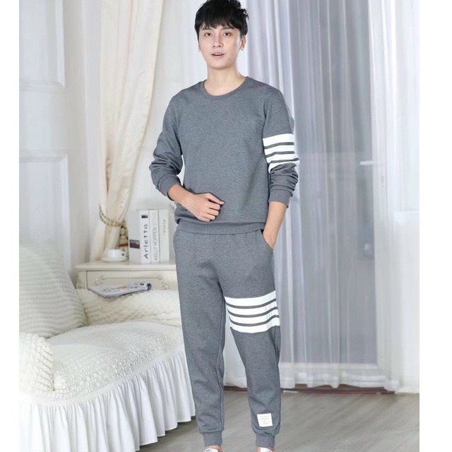 Bộ nỉ thu đông nam nữ 4 sọc tay vải umi chuẩn đẹp