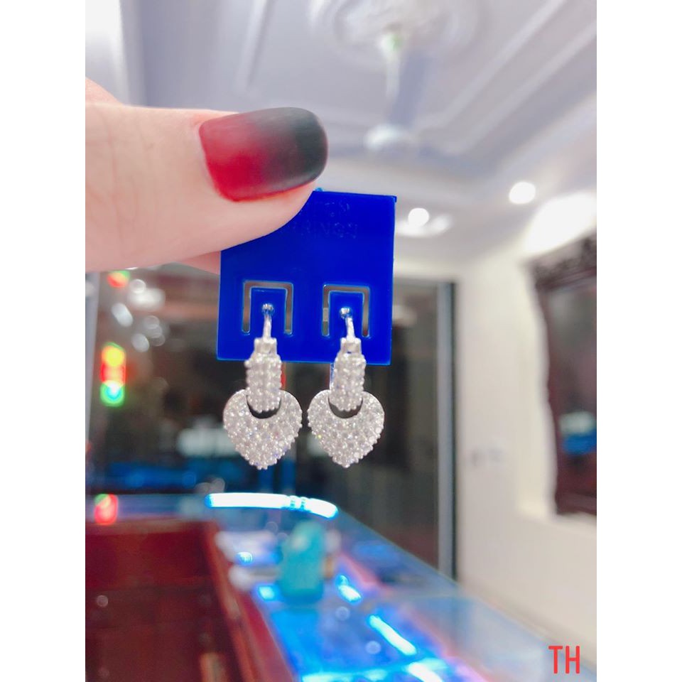 Bông tai đẹp chất treo trái tim đá dăm bạc cho nữ giá xưởng