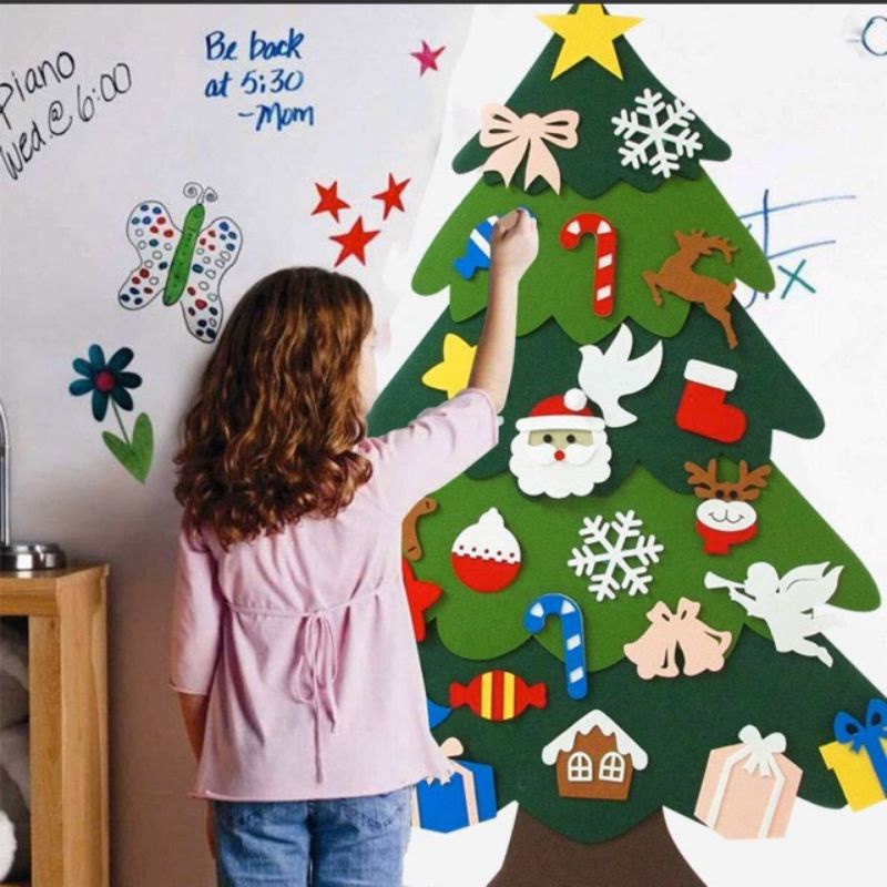 Cây Thông Noel Giáng Sinh Vải Treo Tường 2021 Bằng Vải Dạ – Miếng Dán Tường Trang Trí Cây Thông Noel DIY