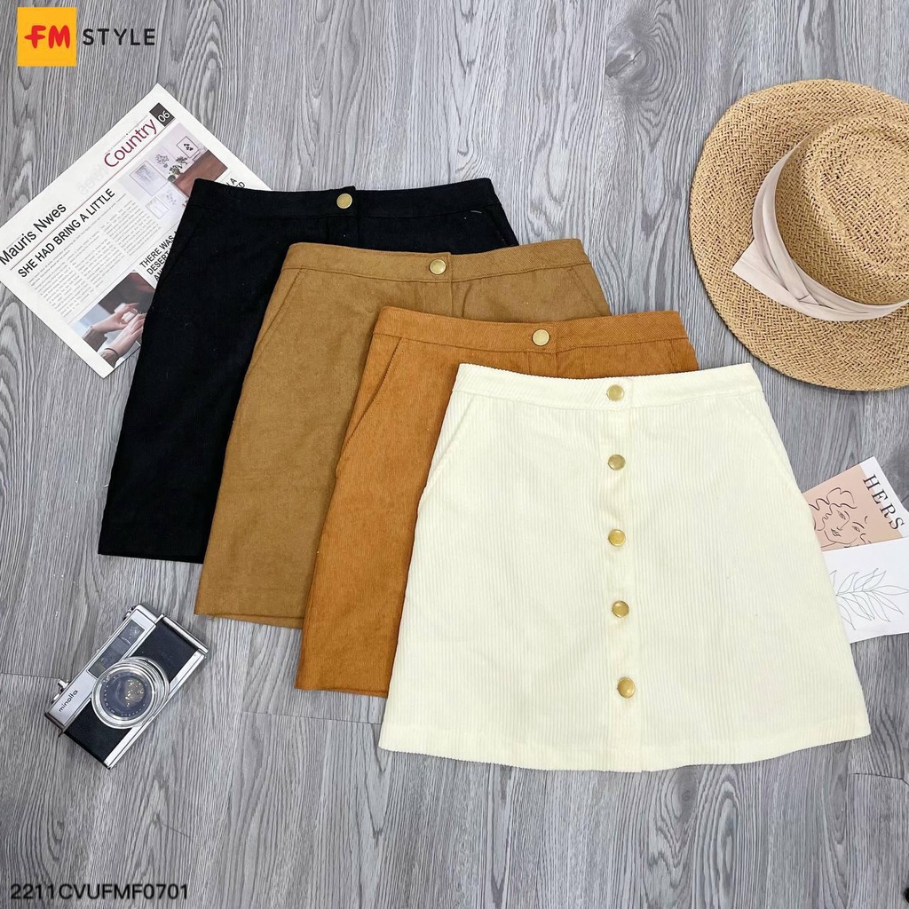 Chân váy chữ A nữ FM Style dáng ngắn đính nút giữa chất nhung gân mềm mịn thời trang Hàn Quốc 211080013