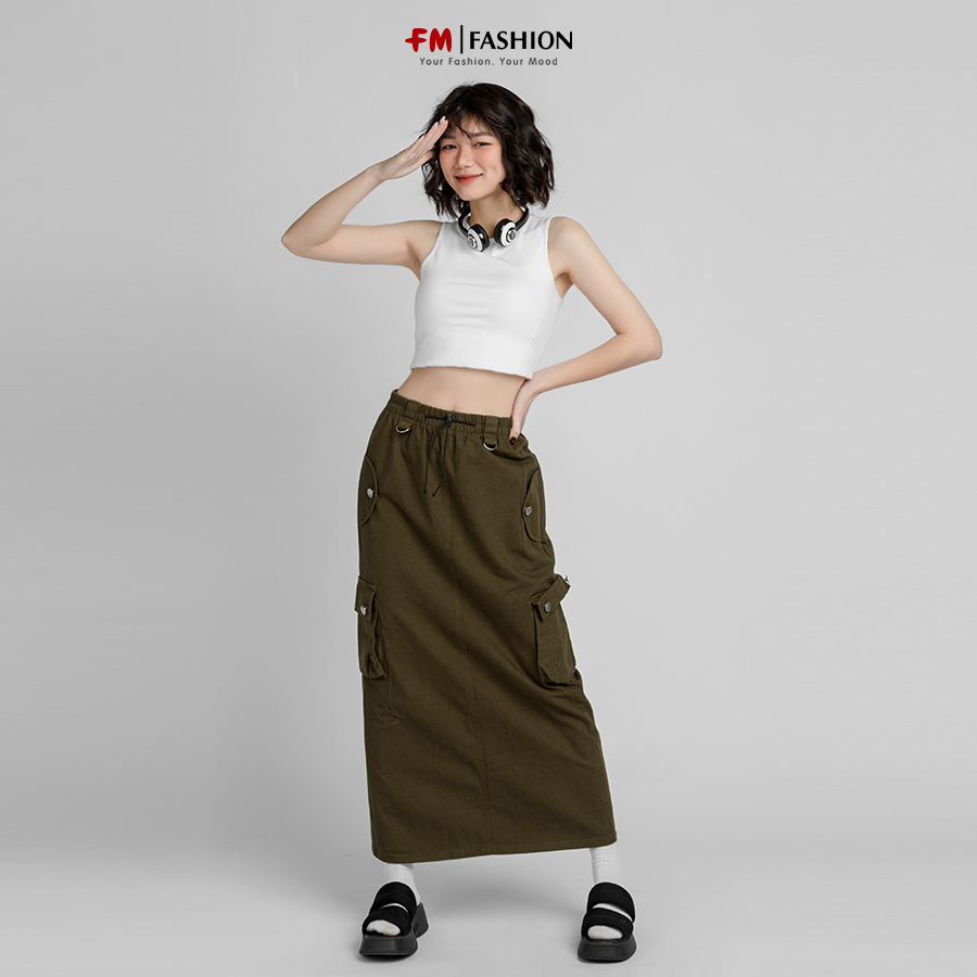 Chân váy dài FM Style chất kaki đứng form lưng thun phối túi hộp thời trang cá tính Hàn Quốc 211090012