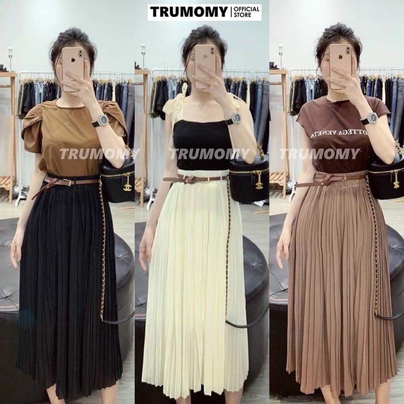 Chân váy xếp ly kèm đai e về thêm loại trơn như mẫu hàng qc