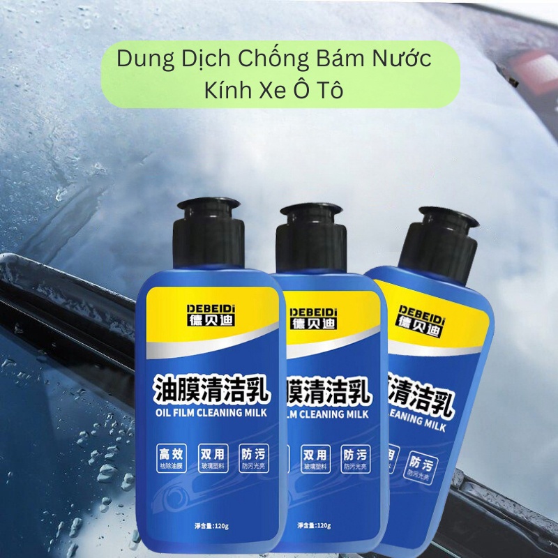 Combo 3 Chai Dung Dịch Chống Bám Nước Kính Xe Ô Tô Dung Tích 120ml Tặng Kèm Miếng Bọt Biển Lau Kính