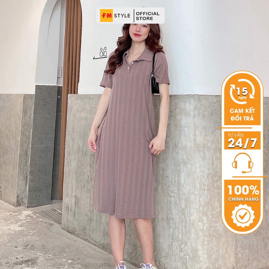 – Tên sản phẩm: Đầm polo nữ FM Style chất thun tăm tay ngắn cổ bẻ dáng suông dài basic thoải mái