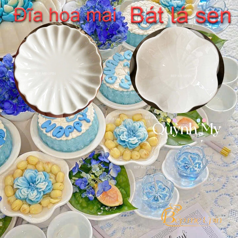 Đĩa sứ hoa mai 9cm bát lá sen 11.3cm, đĩa đựng bánh bao xinh lắm ạ, bát thì đựng chè sen đẹp lắm nha