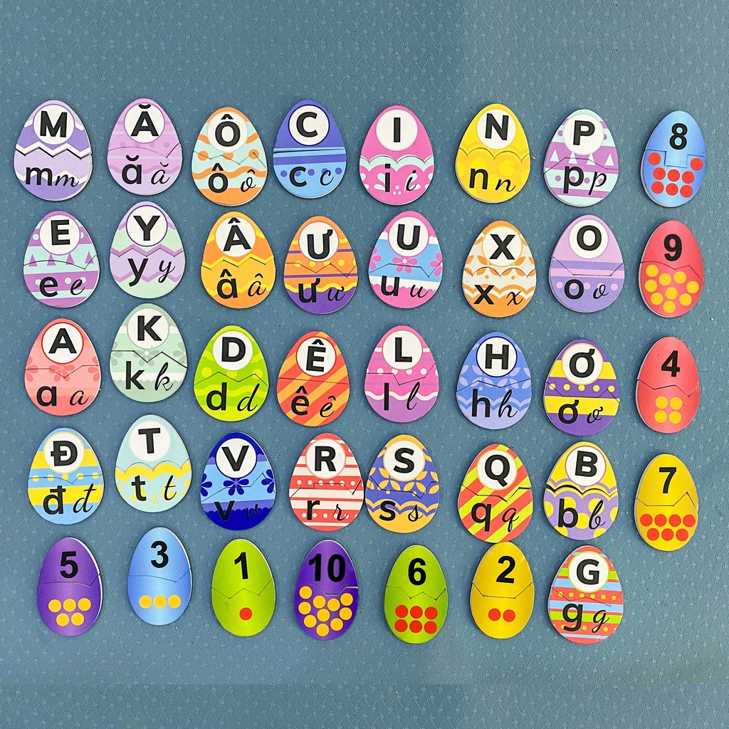 Đồ chơi giáo dục trò chơi ghép hình Bộ trứng nam châm 78 chi tiết số và chữ cái Tiếng Việt giúp bé vừa học vừa chơi