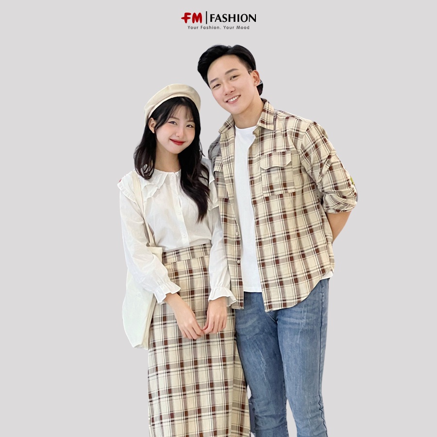 Đồ đôi FM STYLE chân váy bút chì dáng dài kèm áo sơ mi cổ bẻ dài tay phối hoạ tiết sọc caro 210110022 210030055
