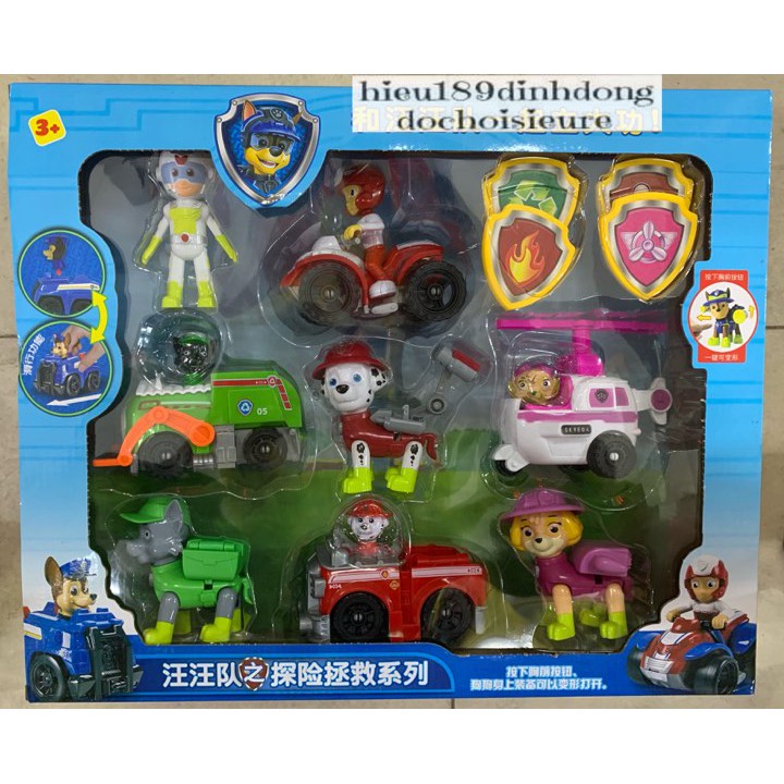 Hộp chó cứu hộ chức năng , xe và đội trưởng paw patrol kèm huy hiệu (ảnh thật kèm video)