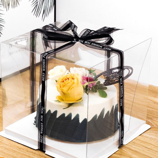 Hộp mica, đáy trắng dùng để đựng bánh sinh nhật.