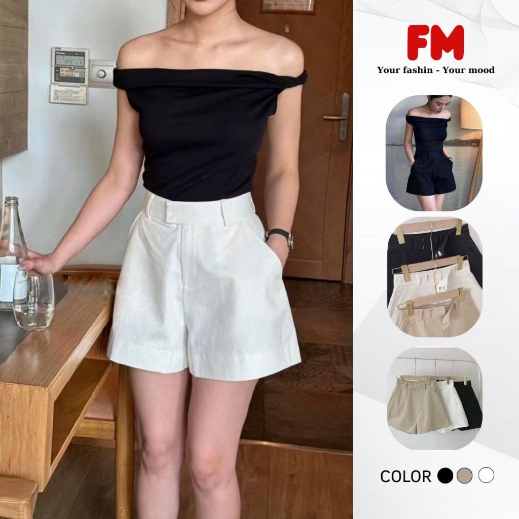 Quân Đùi Kaki Nữ FMSTYLE Trơn Lưng Cao Ống Rộng mang thoải mái màu dễ mang Size SML 25040542
