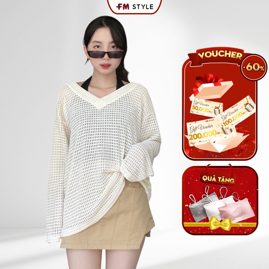 4 đánh giá choSet áo kiểu nữ FM Style vải lưới cổ tim tay dài kèm áo ống choàng cổ thời trang phong cách Ulzzang 209130014