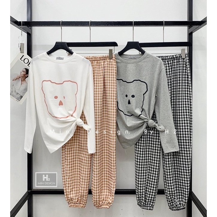 Set Bộ Gấu Mix Quần Bom Kẻ Siêu Xinh