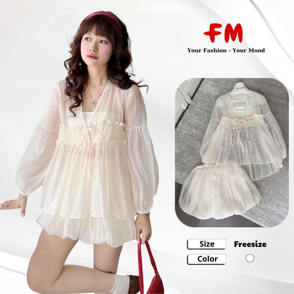 Set Bộ Váy Kiểu Babydoll FMSTYLE 3Món chân váy bí+Áo voan tay dài+áo ống dễ thương Freesize 25070637