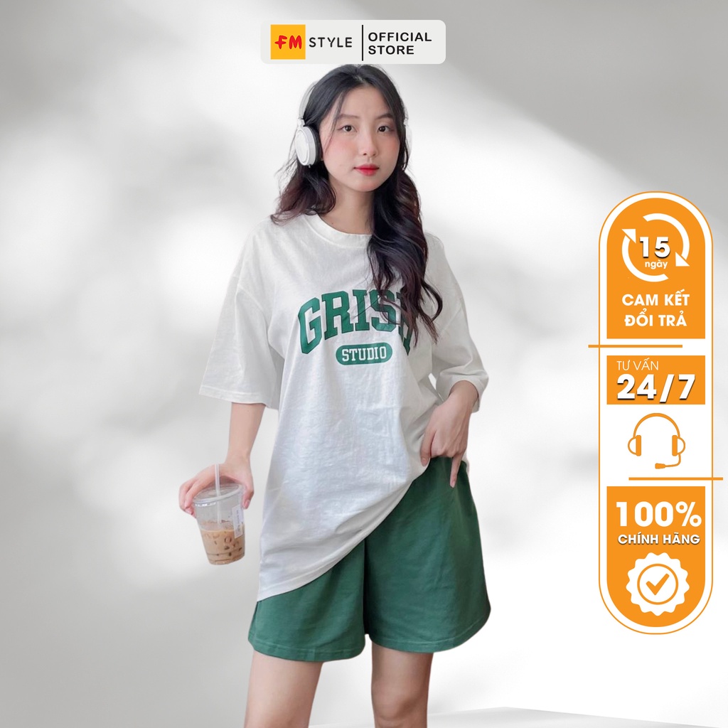 Set đồ bộ nữ FM Style quần đùi kèm áo thun cổ tròn form rộng unisex in hình phong cách thời trang thể thao 207120093